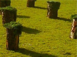 Houten stam met stukje kunstgras